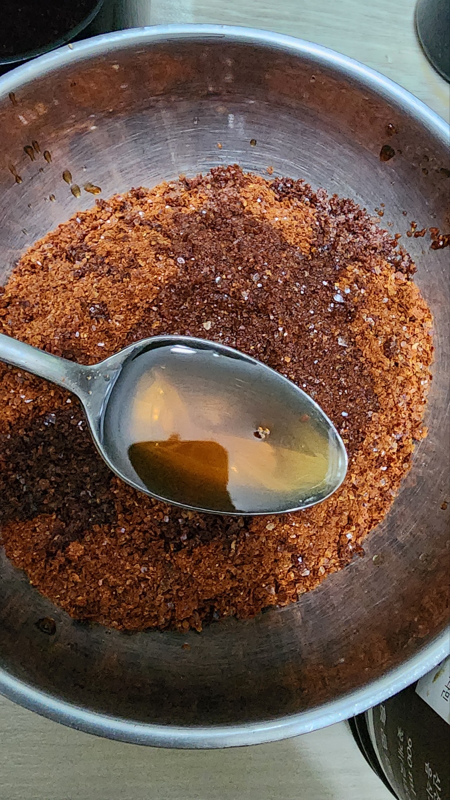 고춧가루(7큰술), 매실(2큰술), 꽃게액젓(4큰술), 멸치액젓(4큰술) 물엿(4큰술)