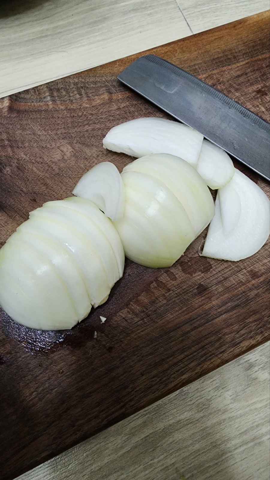 양파는 한 1cm 정도 두께로 썰어서 준비해 주시고요
